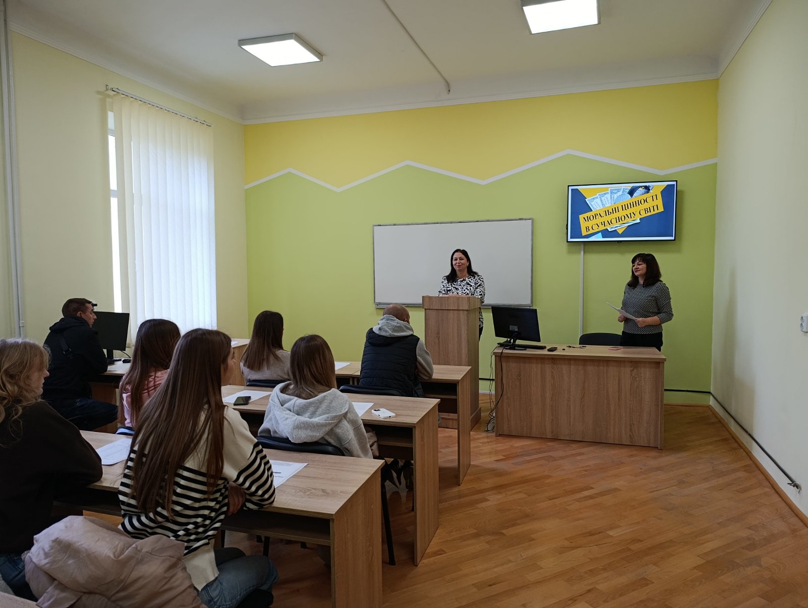 У сучасному суспільстві, яке стрімко змінюється під впливом технологій, інформаційного потоку та глобалізації, особливо важливим стає питання моральних орієнтирів. Саме цій темі була присвячена виховна година «Моральні цінності у сучасному світі», яку 23 жовтня 2025 року організували доцентки кафедри обліку і аудиту Оксана СЛИВІНСЬКА та Ореста БОДНАР для здобувачів вищої освіти спеціальності «Облік і оподаткування».