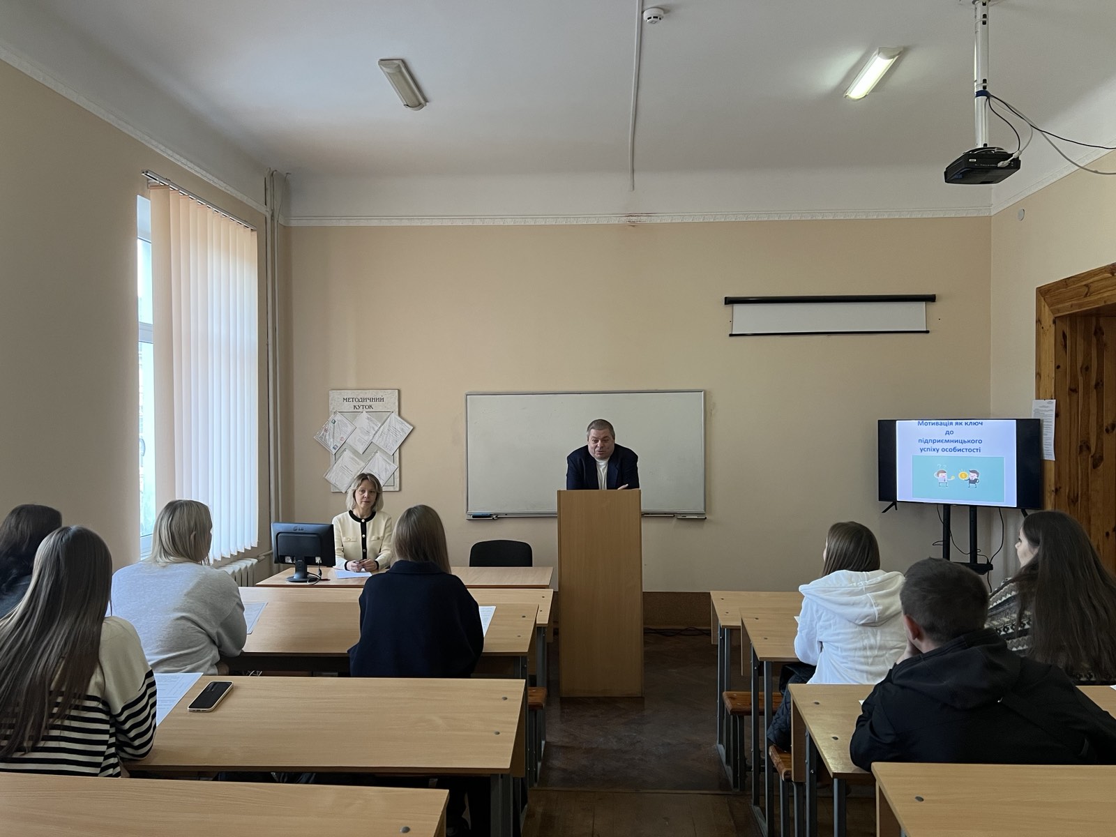 23 жовтня 2025 р. у межах студентського наукового гуртка «Менеджмент ХХІ століття» було проведено ділову гру «Мотивація як ключ до підприємницького успіху особистості». Її мета – усвідомити роль мотивації у досягненні поставлених цілей, навчитися визначати внутрішні та зовнішні стимули, а також розвивати навички ефективного управління мотивацією у команді.