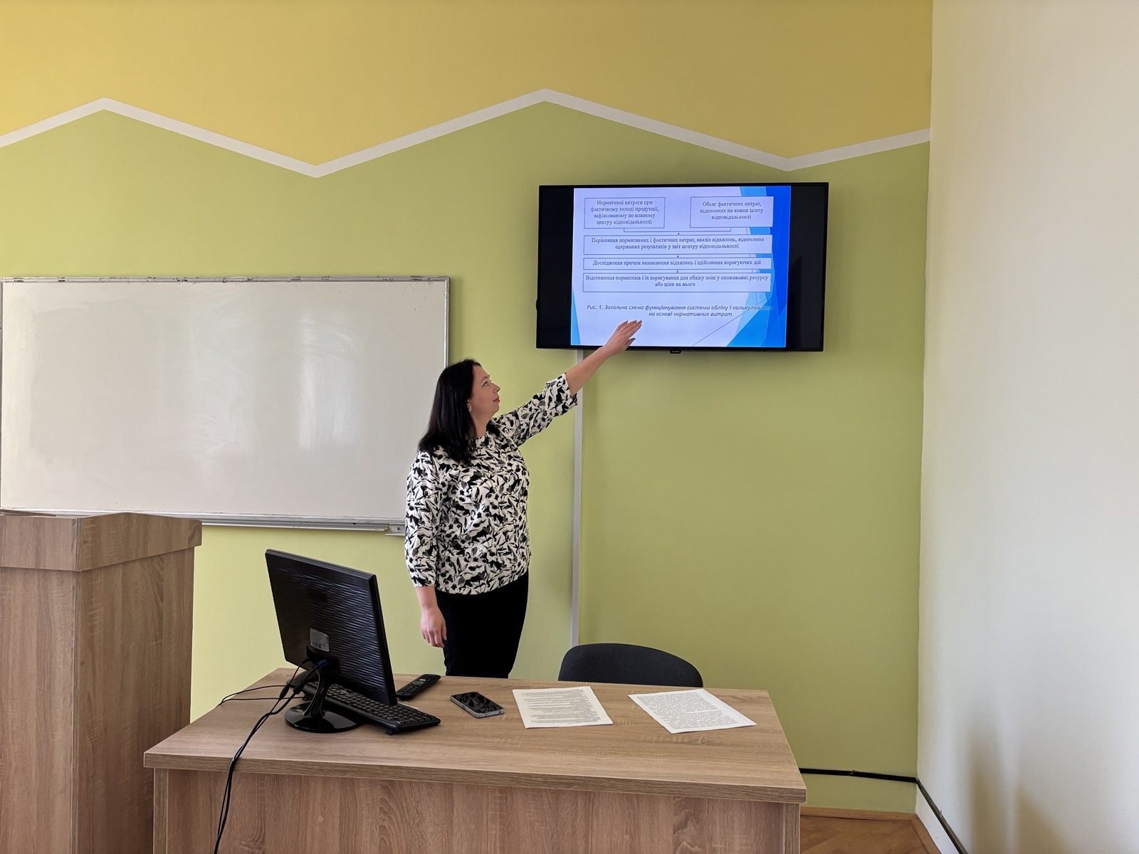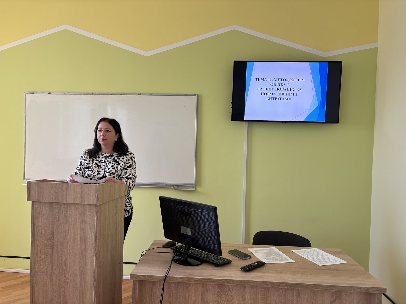 Під час заняття доцентка Ореста БОДНАР розкрила мету лекції, актуальність теми, розповіла про сутність та особливості становлення, впровадження і розвитку нормативного методу обліку витрат і калькулювання. Вона ознайомила здобувачів вищої освіти з елементами методу стандарт-кост і нормативного методу, надала їм порівняльну оцінку. Детально зупинилась на організаційних аспектах щодо складання нормативних калькуляцій.