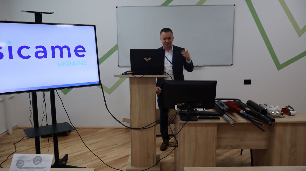 Продовжив семінар Владислав Ковальчук, який перейшов безпосередньо до реалізації теми семінару, яка включала особливості монтажу елементів виробництва компанії «СІКАМ Україна» для електричних мереж, детальний аналіз та характеристики електротехнічної продукції, а також впровадження програмних комплексів SiCAD для проєктування систем електропостачання. Особливу увагу спікер приділив огляду та технічним характеристикам силових кабелів, конструкції й призначенню кабельних муфт, вимогам до інструментів і матеріалів, а також правилам та технології монтажу з метою недопущення помилок під час виконання монтажних робіт.