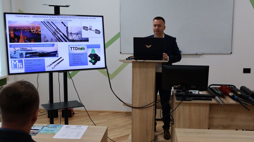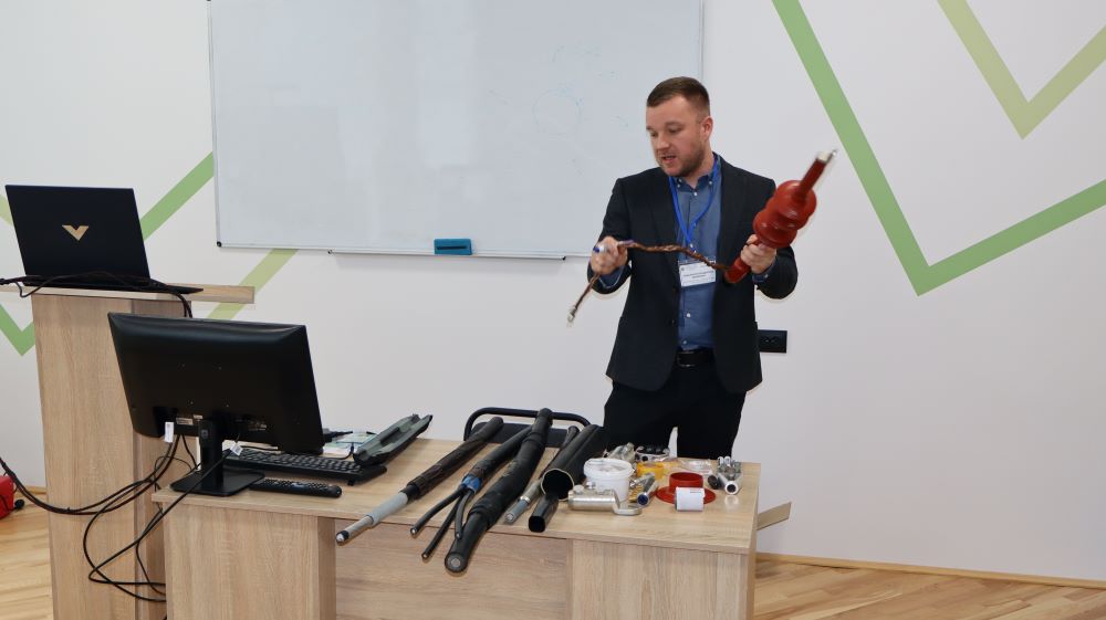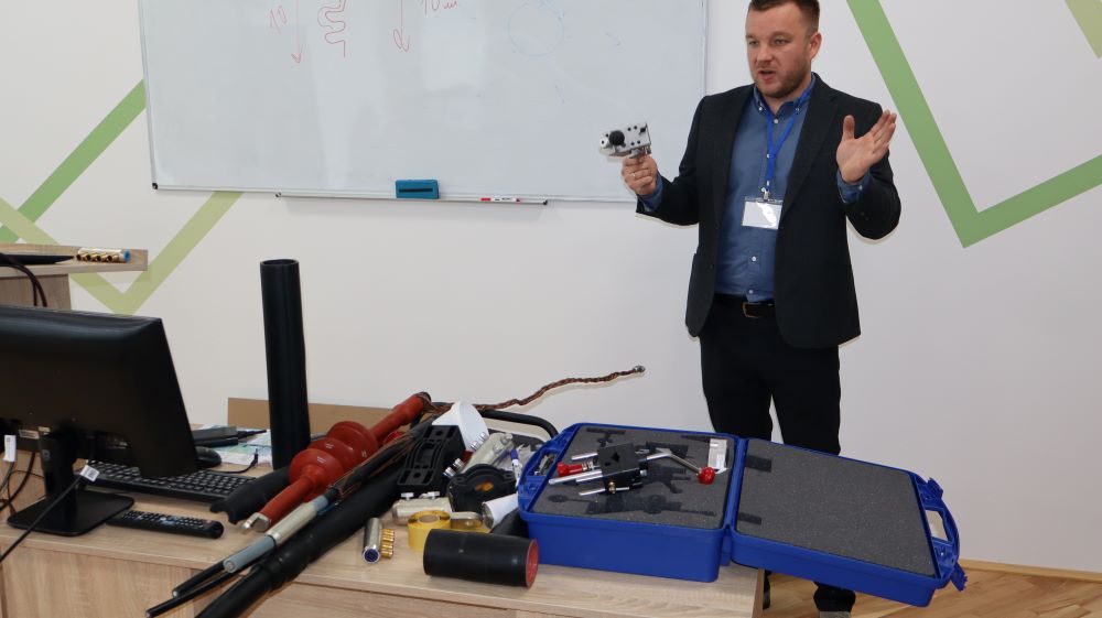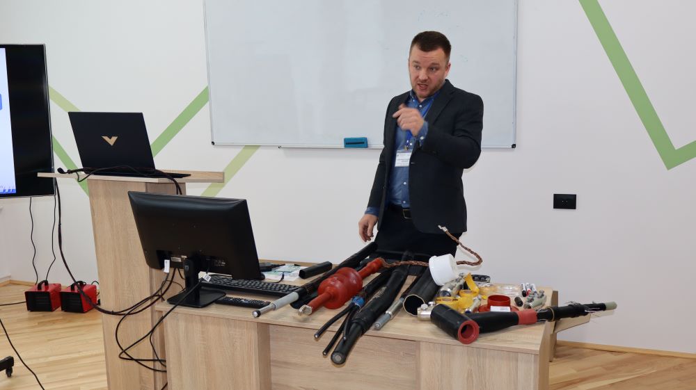 Після завершення теоретичної частини семінару Василь Бунько подякував спікерам за цікаву та змістовну доповідь і зауважив, що на сьогоднішній день компанія надала широкий перелік сучасного електрообладнання зокрема навчальні стенди з арматурою, затискачі для кріплення та з’єднання проводів повітряних ліній напругою від 1 до 35 кВ, кабельні муфти для ліній 1-35 кВ, обладнання для жорсткої ошиновки високовольтних підстанцій, елементи для технології монтажу самонесучих ізольованих проводів (СІП) напругою 0,4 та 10 кВ, адже вивчення та дослідження сучасної арматури та елементів ліній електропередач даних класів напруги сприятиме набуття професійних компетентностей у здобувачів вищої освіти, передбачених освітньо-професійними програмами підготовки фахівців в сфері електроенергетики та електротехніки.