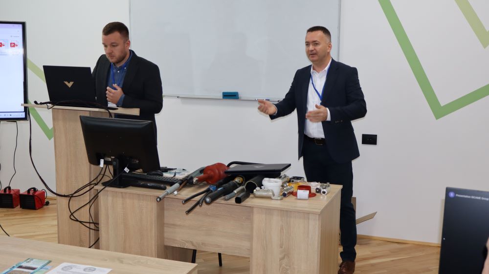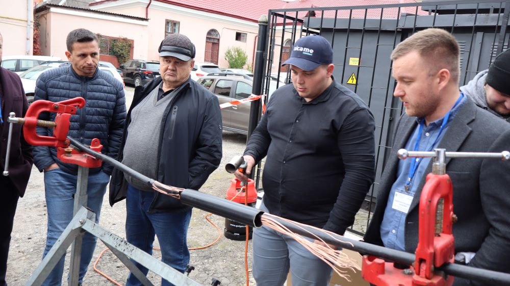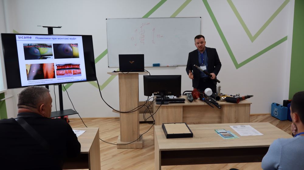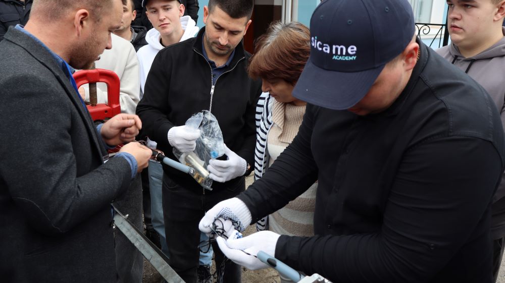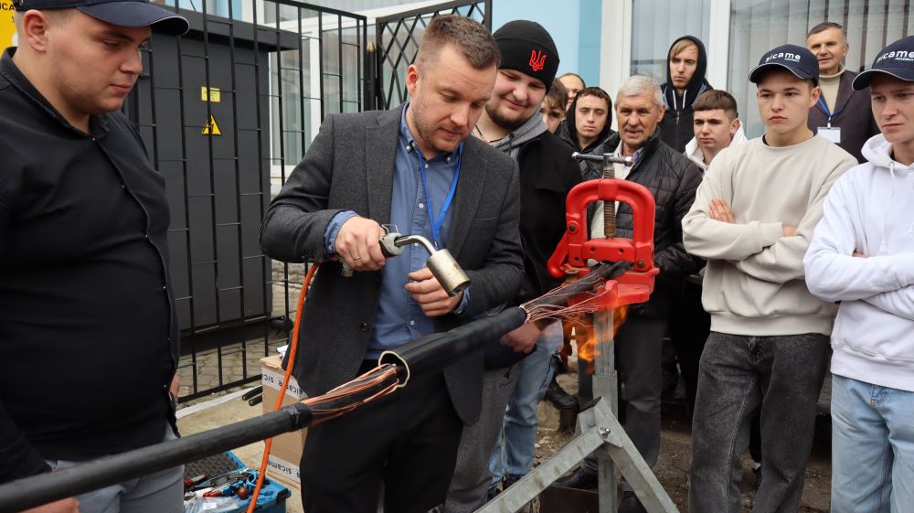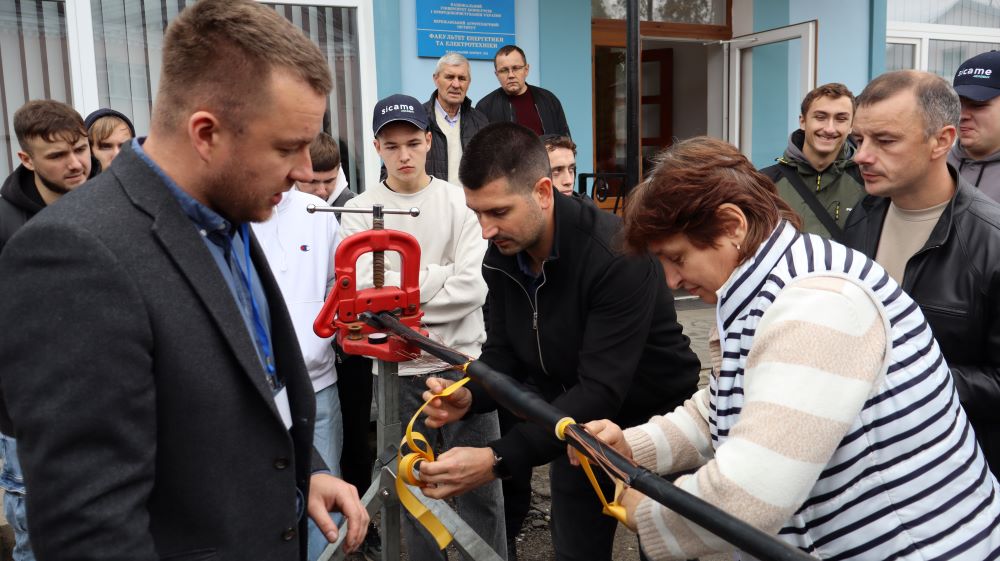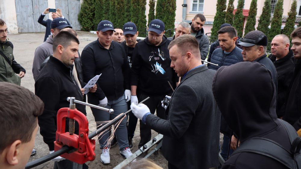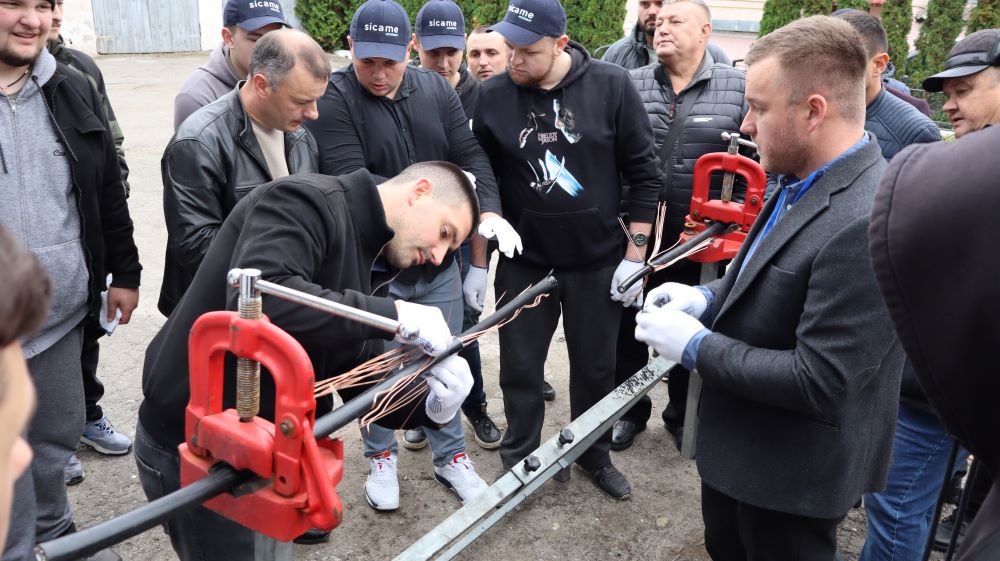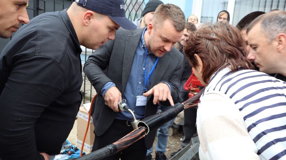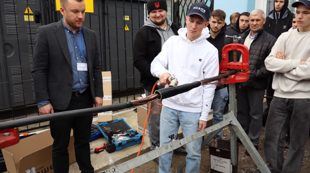 Практична частина, яка відбувалась на майданчику для тренінгів включала підготовку та налаштування інструменту для роботи, розробку кабелю із зшитого поліетилену (6–24 кВ) і монтаж з’єднувальних, кінцевих, перехідних та відгалужувальних кабельних муфт для високовольтного кабелю. Особливу зацікавленість викликали нові рішення SICAME Group – перехідна муфта JTMPTH 12 70-240 СМ, відгалужувальна муфта D3UPTH RSM 50-240 та кінцева муфта холодної усадки E3UERF 24 50-240 СМ, які здобувачі вищої освіти та викладачі монтували вперше.