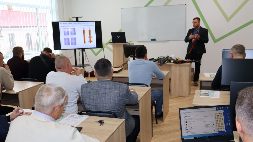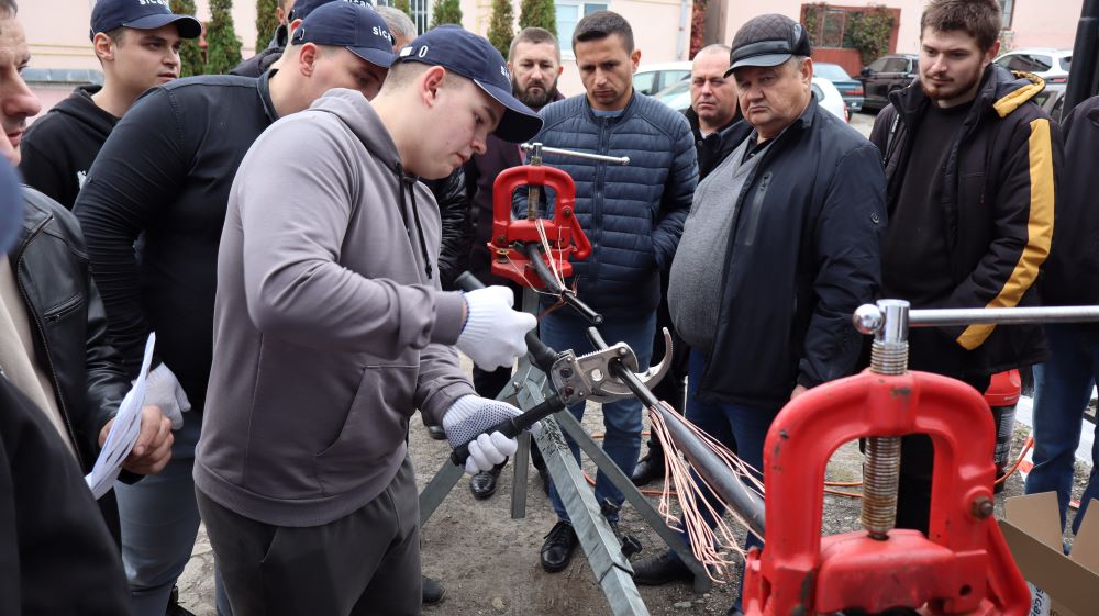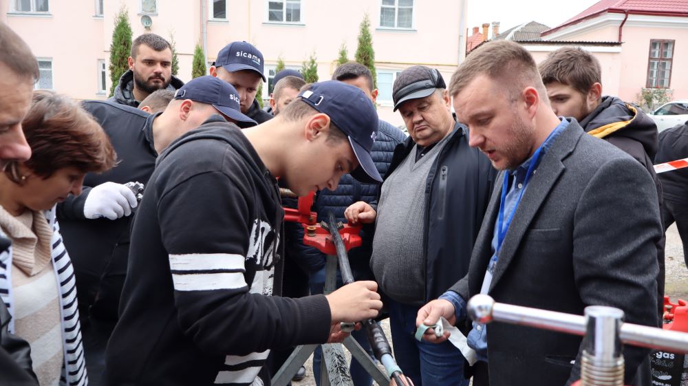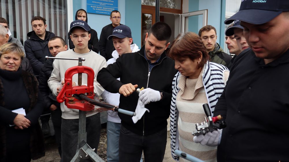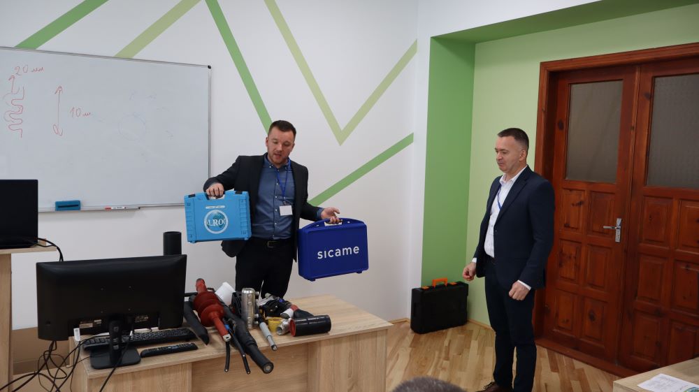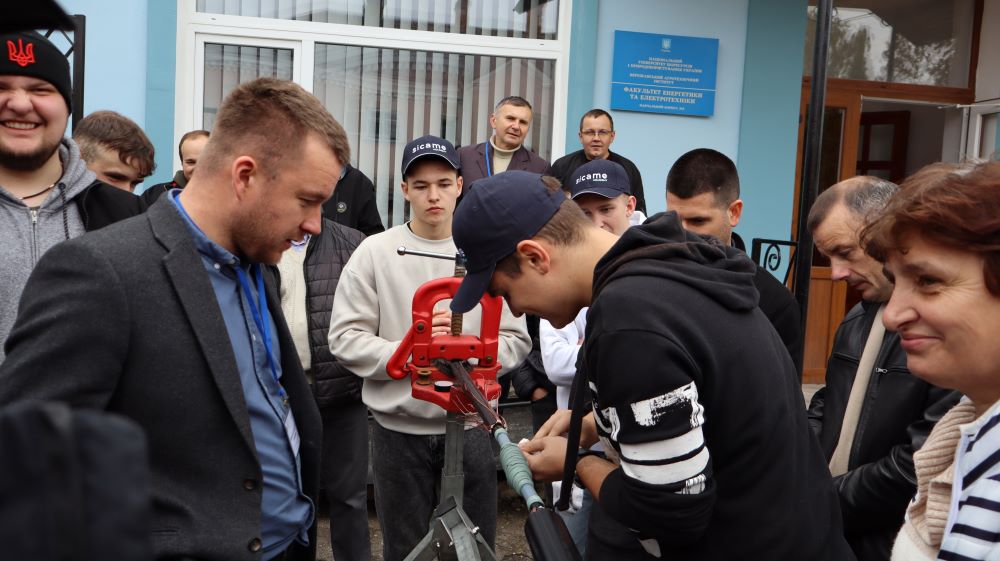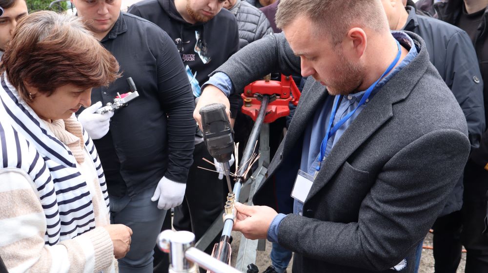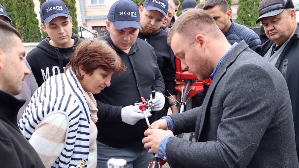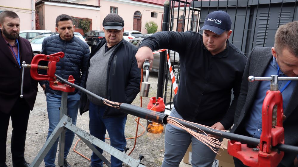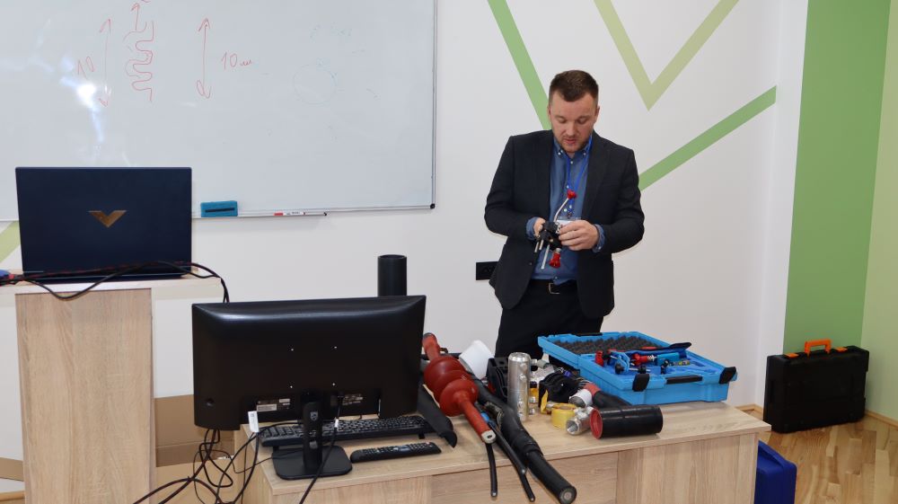 Практична частина, яка відбувалась на майданчику для тренінгів включала підготовку та налаштування інструменту для роботи, розробку кабелю із зшитого поліетилену (6–24 кВ) і монтаж з’єднувальних, кінцевих, перехідних та відгалужувальних кабельних муфт для високовольтного кабелю. Особливу зацікавленість викликали нові рішення SICAME Group – перехідна муфта JTMPTH 12 70-240 СМ, відгалужувальна муфта D3UPTH RSM 50-240 та кінцева муфта холодної усадки E3UERF 24 50-240 СМ, які здобувачі вищої освіти та викладачі монтували вперше.