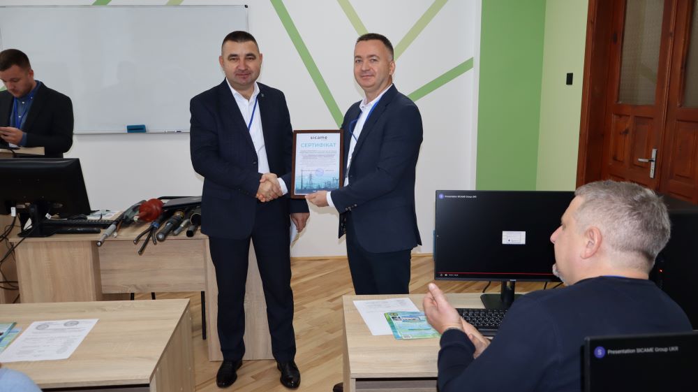 Роман Бінерт детально розповів про діяльність компанії, її основні напрями та перспективи розвитку, а також про впровадження інноваційних технологій у системі електропостачання. Він наголосив на важливості відкриття й введення в експлуатацію у 2024 році спеціалізованої навчальної лабораторії «SICAME UKRAINE» на факультеті енергетики та електротехніки ВП НУБіП України «Бережанський агротехнічний інститут» та урочисто вручив СЕРТИФІКАТ, що підтверджує функціонування даної лабораторії та засвідчує відповідність використання електротехнічного обладнання в освітньо-науковому процесі, що гарантує достовірність проведених досліджень, і свідчить про високий рівень якості та компетентності лабораторії при підготовці фахівців в сфері електроенергетики та електротехніки.