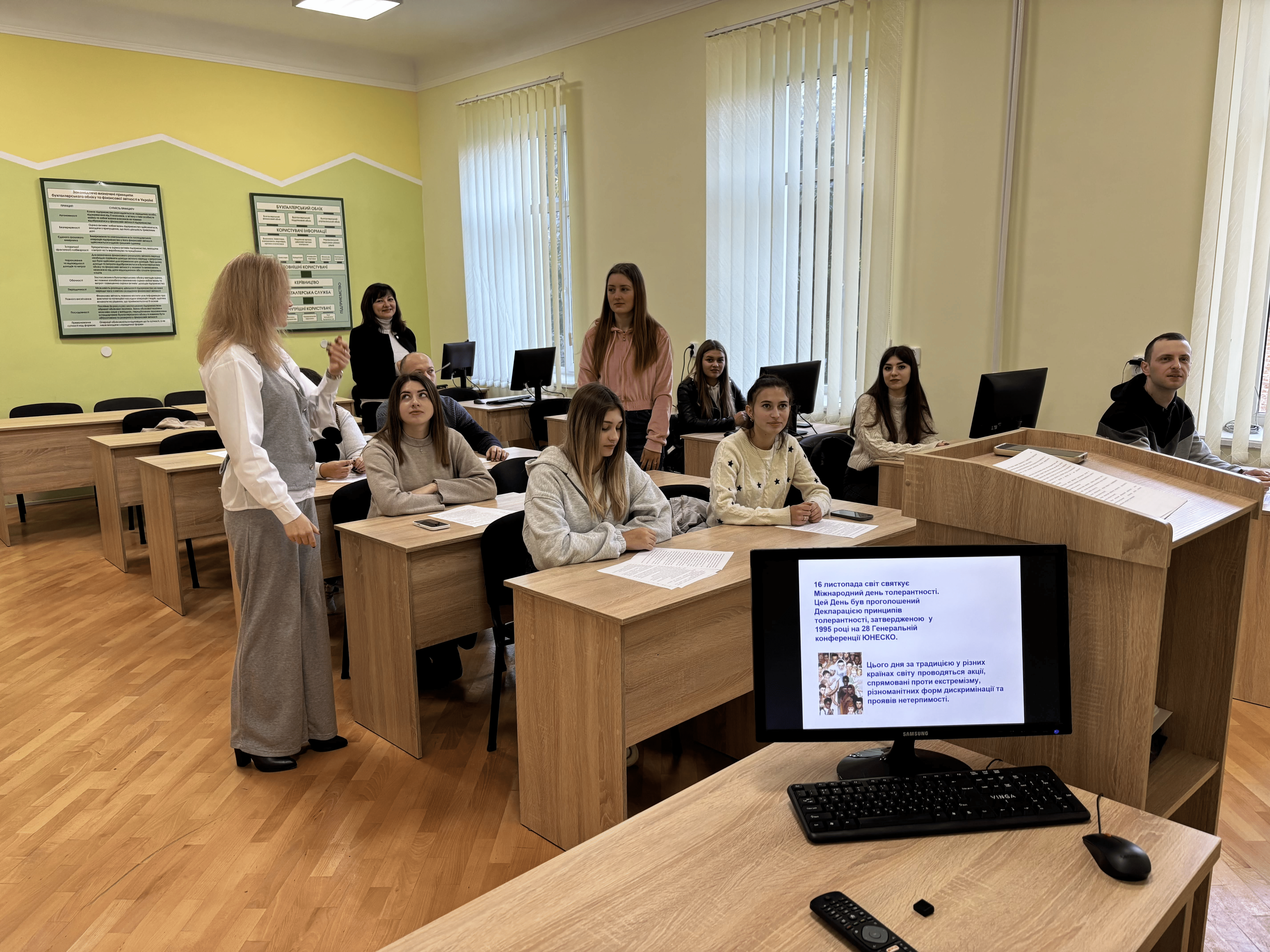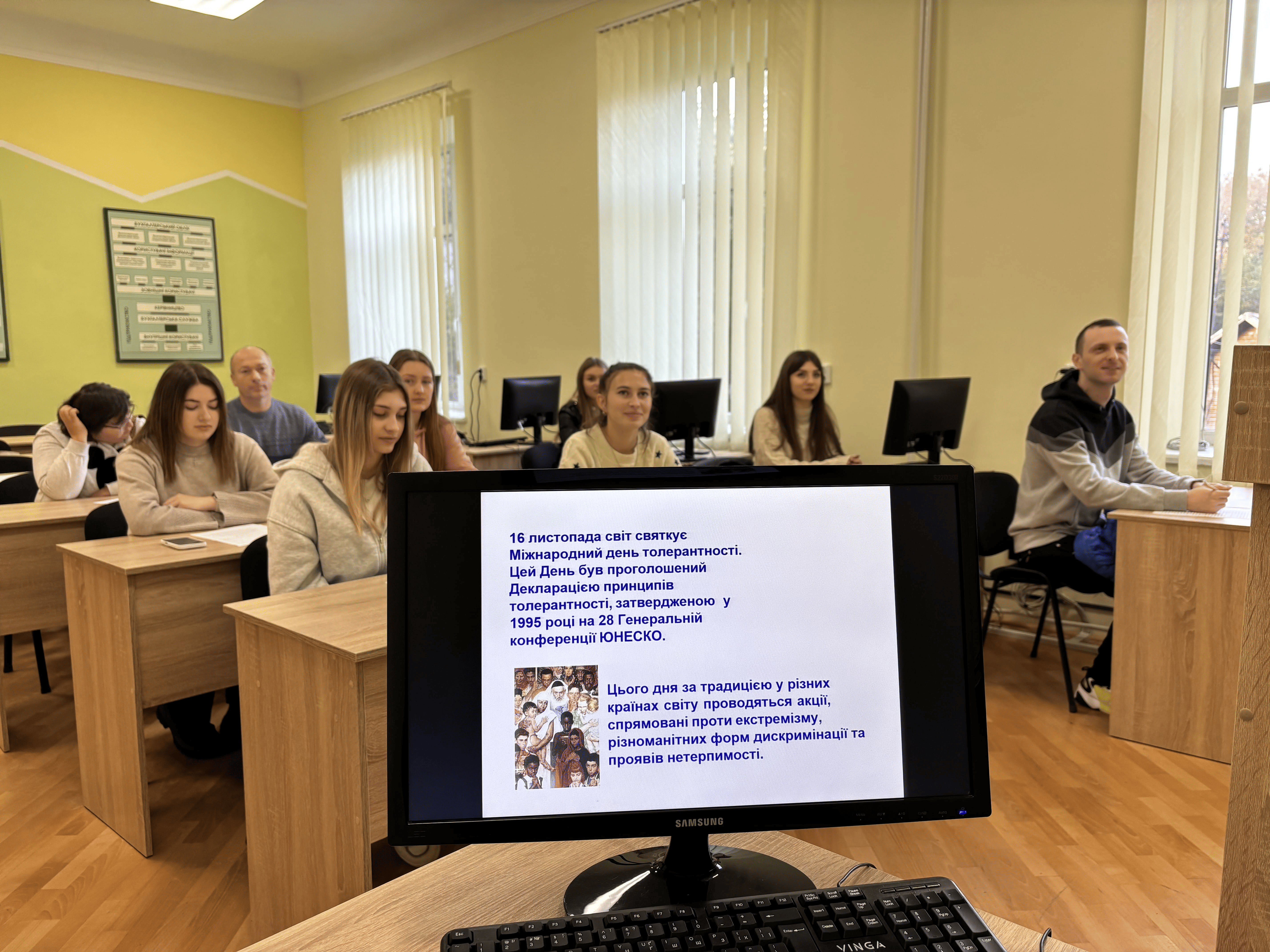 У сучасному світі, що сповнений викликів і суперечностей, особливо важливо навчитися приймати інших такими, якими вони є. Саме цій темі була присвячена виховна година «Толерантність – основа людяності», яку 17 листопада 2025 року провели завідувачка кафедри обліку і аудиту Оксана СЛИВІНСЬКА та старша викладачка кафедри обліку і аудиту Оксана ЗІНИЧ для здобувачів вищої освіти спеціальностей «Облік і оподаткування» та «Економіка та міжнародні економічні відносини (за спеціалізаціями)».